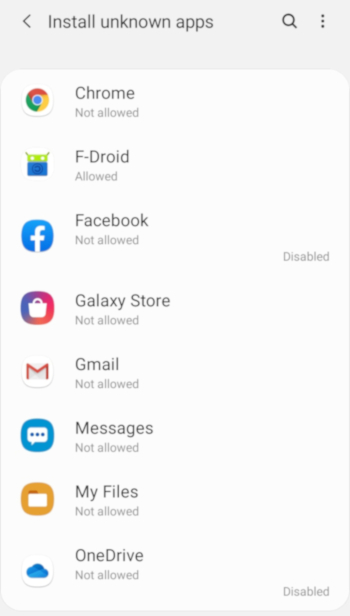 Stalkerware applications are installed directly from the application file (APK), which is by default forbidden by Android. To install the application, the person needs to allow the installation from Unknown Sources.
